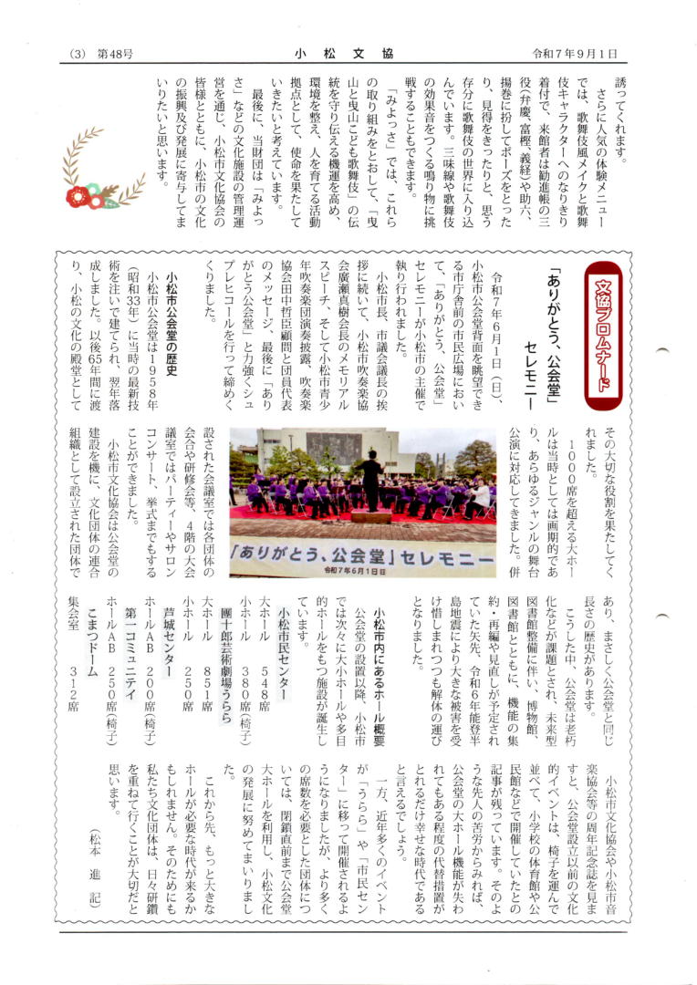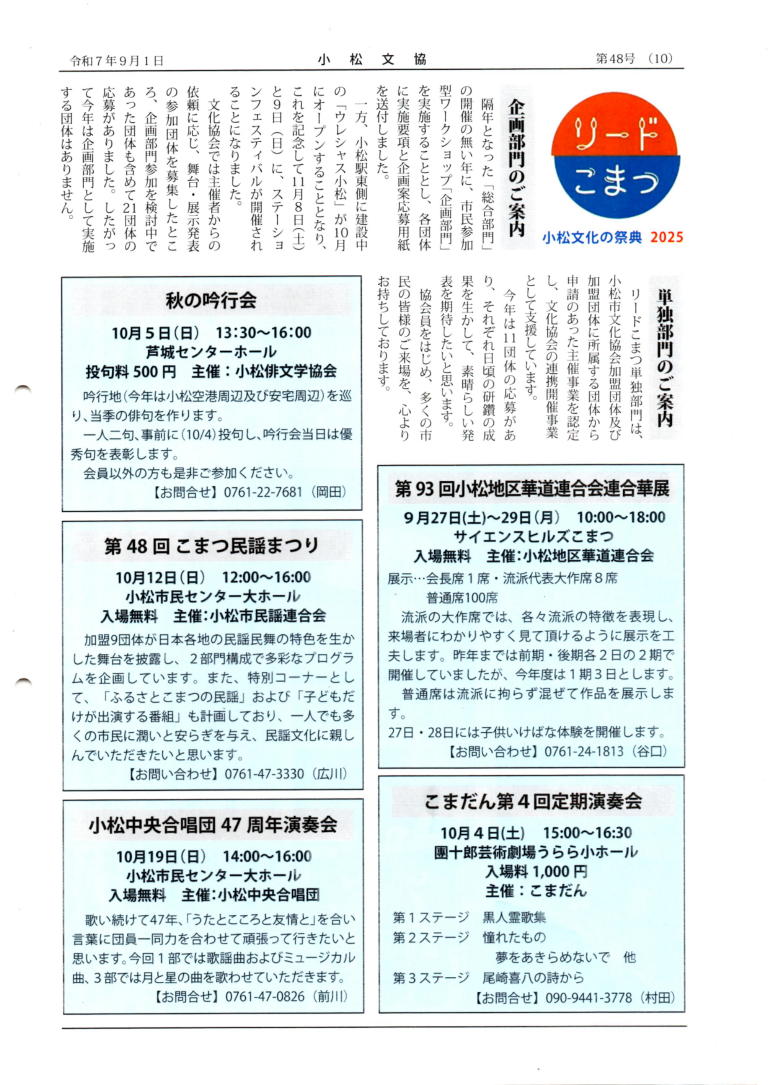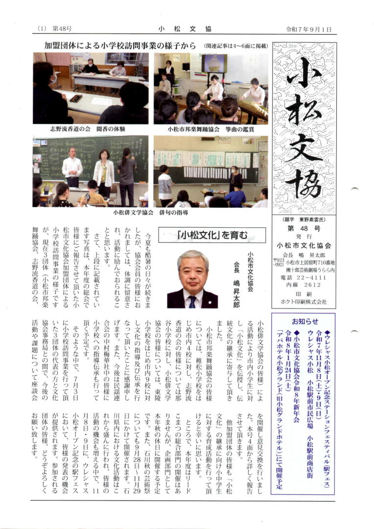 §923-0921 Î쌧¬¼Žs“y‹Œ´’¬710”Ô’n@š£\˜YŒ|pŒ€ê‚¤‚ç‚ç “à@ TEL 0761-22-4111 “àü2612 e-mail:komatsubunka@yahoo.co.jp