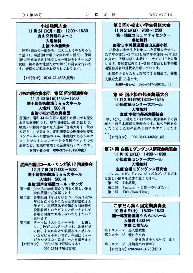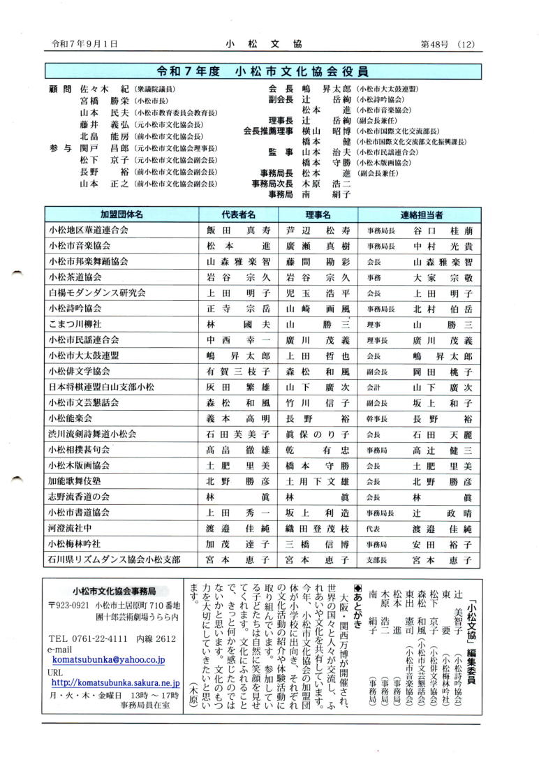 §923-0921 Î쌧¬¼Žs“y‹Œ´’¬710”Ô’n@š£\˜YŒ|pŒ€ê‚¤‚ç‚ç “à@ TEL 0761-22-4111 “àü2612 e-mail:komatsubunka@yahoo.co.jp